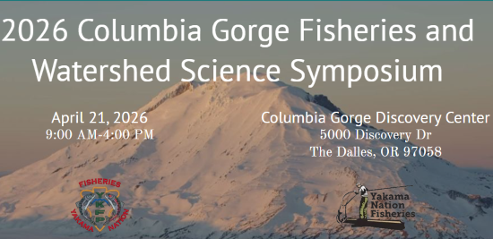 Registration is now open for the upcoming Columbia Gorge Fisheries and Watershed Science Symposium scheduled for Tuesday, 4/21/26 at the Columbia Gorge Discovery Center in The Dalles, Oregon.