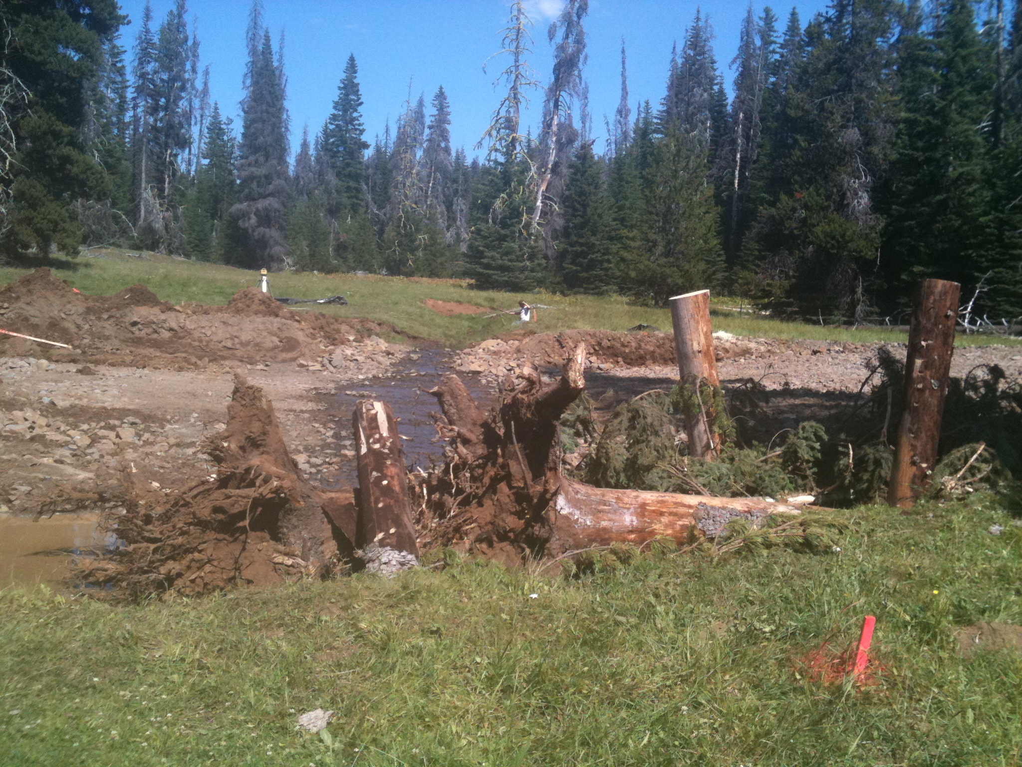 Although westslope cutthroat were collected during electrofishing surveys both downstream and upstream of these two stream crossings, fish passage may be obstructed seasonally to adults and likely year round to smaller individuals. The culverts also obstruct bed-load and large woody debris transport as indicated by its accumulation at the culvert inlets. By removing these two culverts, Endangered Species Act listed steelhead will likely benefit from the improvement of stream function, a reduction in fine sediment, and an increase in base flows resulting from the restoration of natural wet meadow hydrology. Additional wildlife and plant species may benefit as well.