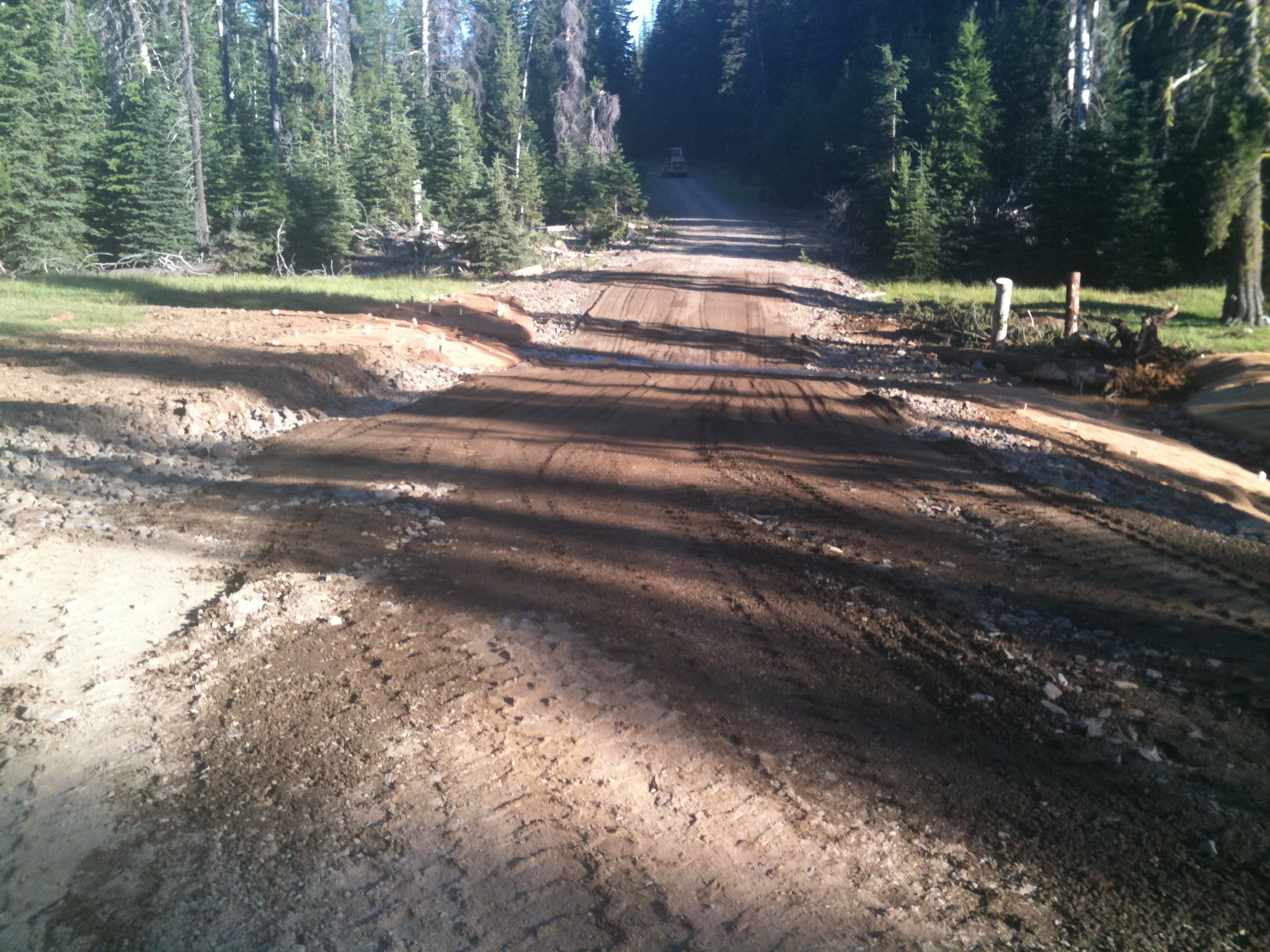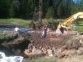 YRWP removed the culvert where Fort Simcoe Road crosses Panther Creek. In its place, an armored rock ford was constructed at the proper angle and grading to allow crossing by most vehicles including trucks and logging equipment. Constructed riffle and inverted rock weirs were constructed below the crossing (between 5 and 50 feet downstream) with drops of less than 0.5 feet to allow passage of adult and larger juvenile fish from winter through early summer. The plunge pool was partially filled with gravel and woody debris was placed at the meander bend to encourage bank stability and reduce the potential for avulsion into and through the meadow. Equipment used for construction included a small excavator, a dump truck, a water truck, and road grader. The rock needed for the ford was obtained from the Lincoln Meadows rock quarry, while other road construction materials were obtained from the Yakama Nation at nearby quarries.