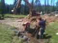 On August 6, 2011, Yakama Nation Fisheries, Yakama Reservation Watersheds Project (YRWP) completed the implementation of a restoration action at two road/stream interfaces on Panther Creek to improve stream function and facilitate fish movement. Sites within the Panther Creek watershed have been degraded due to various human activities (e.g., grazing, road building, and logging). These problems are most obvious at the site on Panther Creek where Fort Simcoe Road # 80 transects T10N, R13E Section 13 and further downstream in T10N, R13E Section 26. The Fort Simcoe Road # 80 crossing bisects an elongated wet meadow. At the culvert outlet, there was a scour pool and culvert drop height of about 1 foot. Westslope cutthroat trout congregated in the scour pool below, indicating that this crossing is likely a fish barrier. The channel is incised by about 1-3 feet downstream of the road and approximately 1-2 feet in areas upstream from the road. Small head cuts and stream bank erosion are apparent in the meadow. Further downstream, another scour pool is at the base of a culvert and drops between 0.5 and 1 foot.