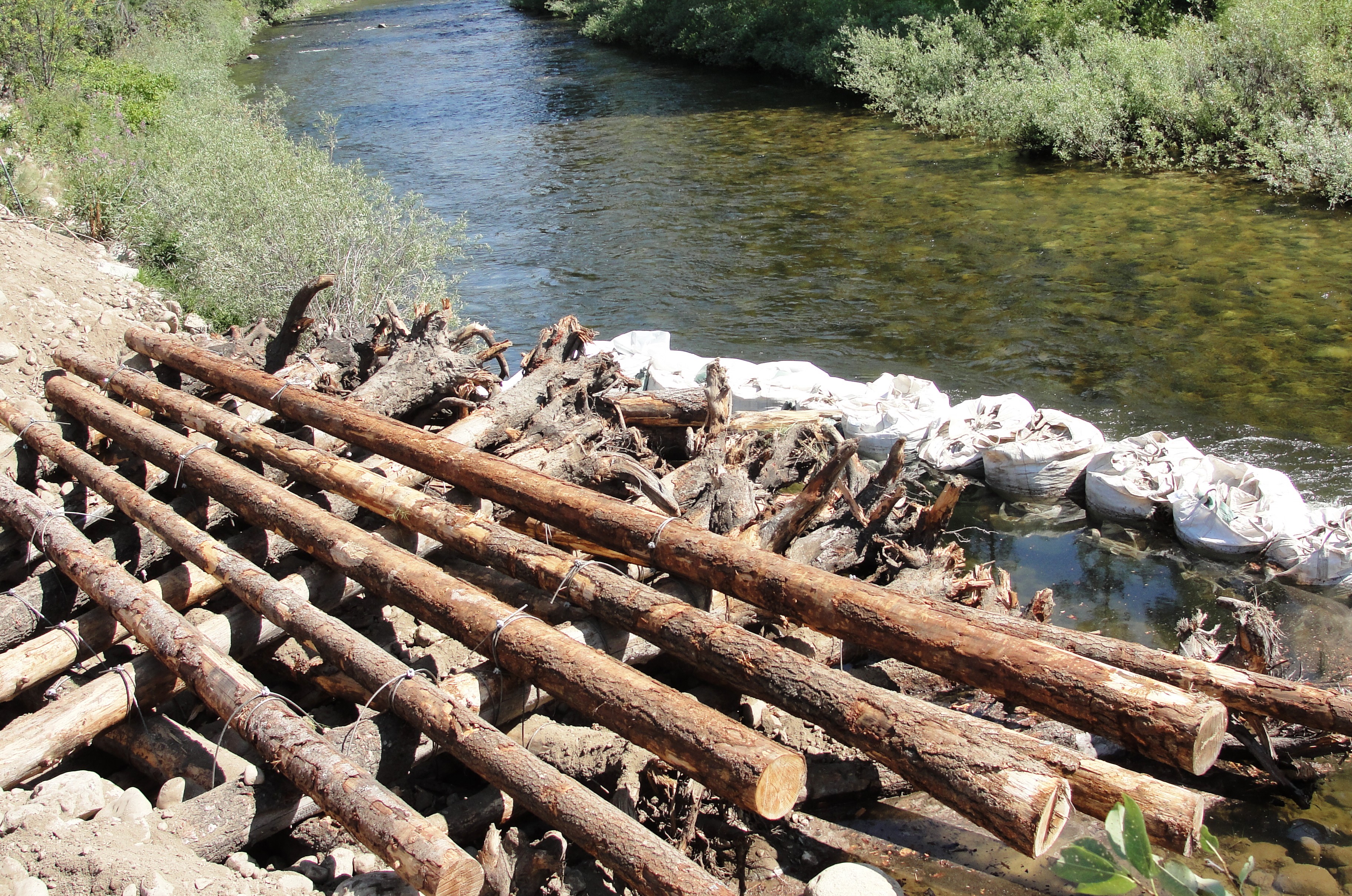 The project was designed to use 272 Douglas fir trees in the construction of 8 Engineered Log Structures (ELS) along a 0.7 mile stretch of the Chewuch River shoreline. Each ELS was strategically positioned so as to provide maximum benefit for emergant, rearing and staging fish. The structures were ballasted by large rocks (up to 2 cubic yards) to ensure that no movement of the ELS would occur during high-water events. Each ELS was configured in the field by our engineers.
