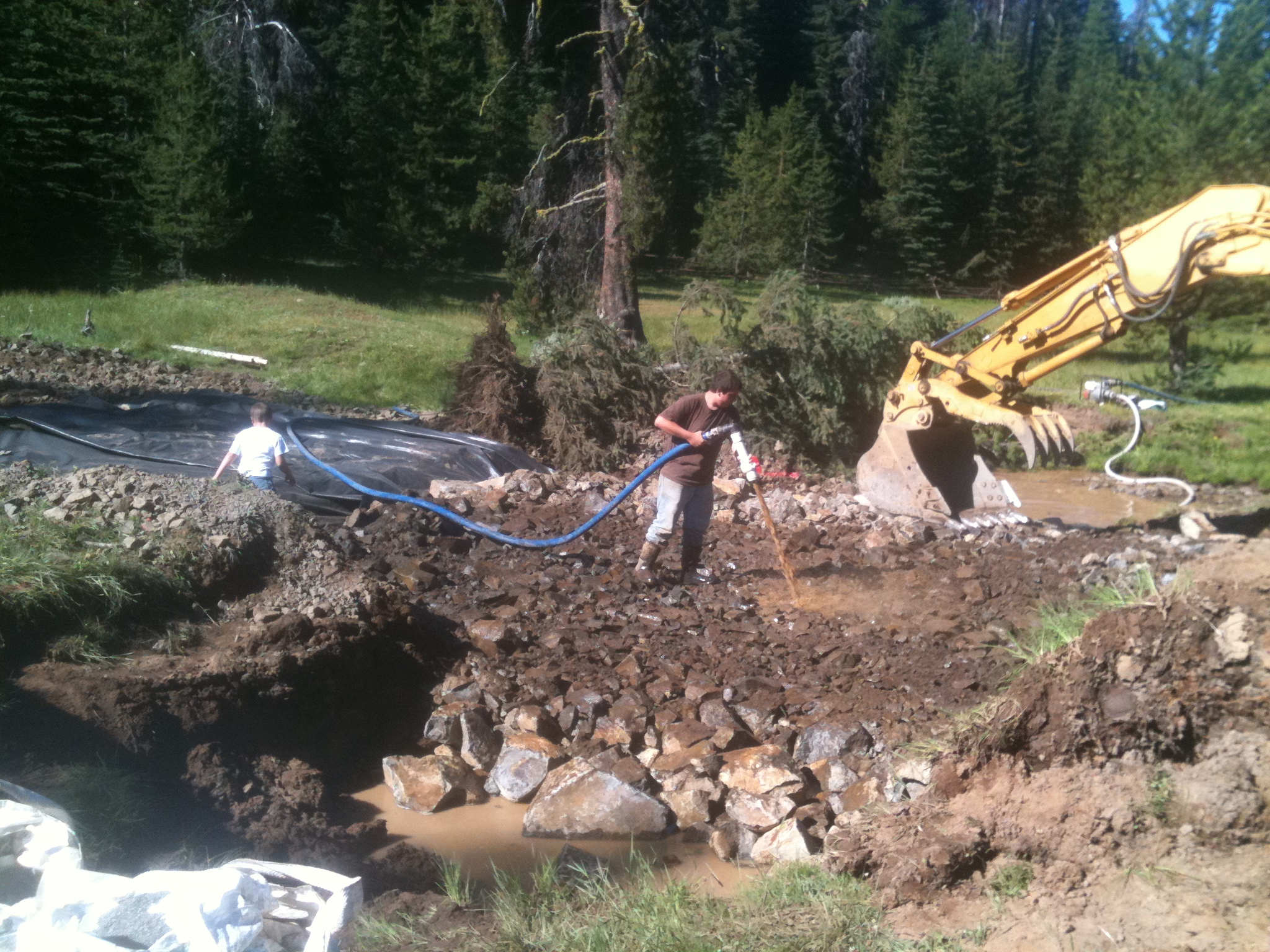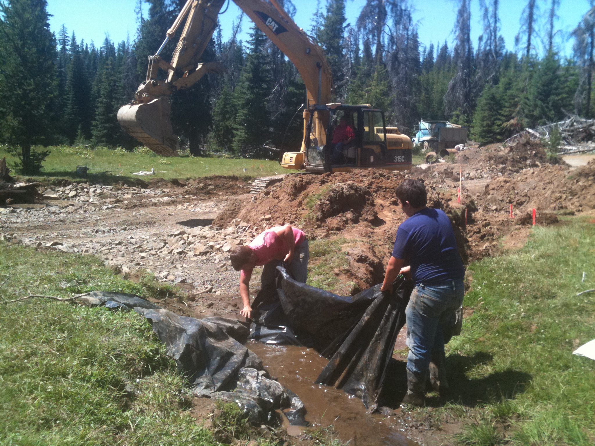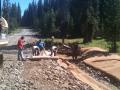 YRWP removed the culvert where Fort Simcoe Road crosses Panther Creek. In its place, an armored rock ford was constructed at the proper angle and grading to allow crossing by most vehicles including trucks and logging equipment. Constructed riffle and inverted rock weirs were constructed below the crossing (between 5 and 50 feet downstream) with drops of less than 0.5 feet to allow passage of adult and larger juvenile fish from winter through early summer. The plunge pool was partially filled with gravel and woody debris was placed at the meander bend to encourage bank stability and reduce the potential for avulsion into and through the meadow. Equipment used for construction included a small excavator, a dump truck, a water truck, and road grader. The rock needed for the ford was obtained from the Lincoln Meadows rock quarry, while other road construction materials were obtained from the Yakama Nation at nearby quarries.