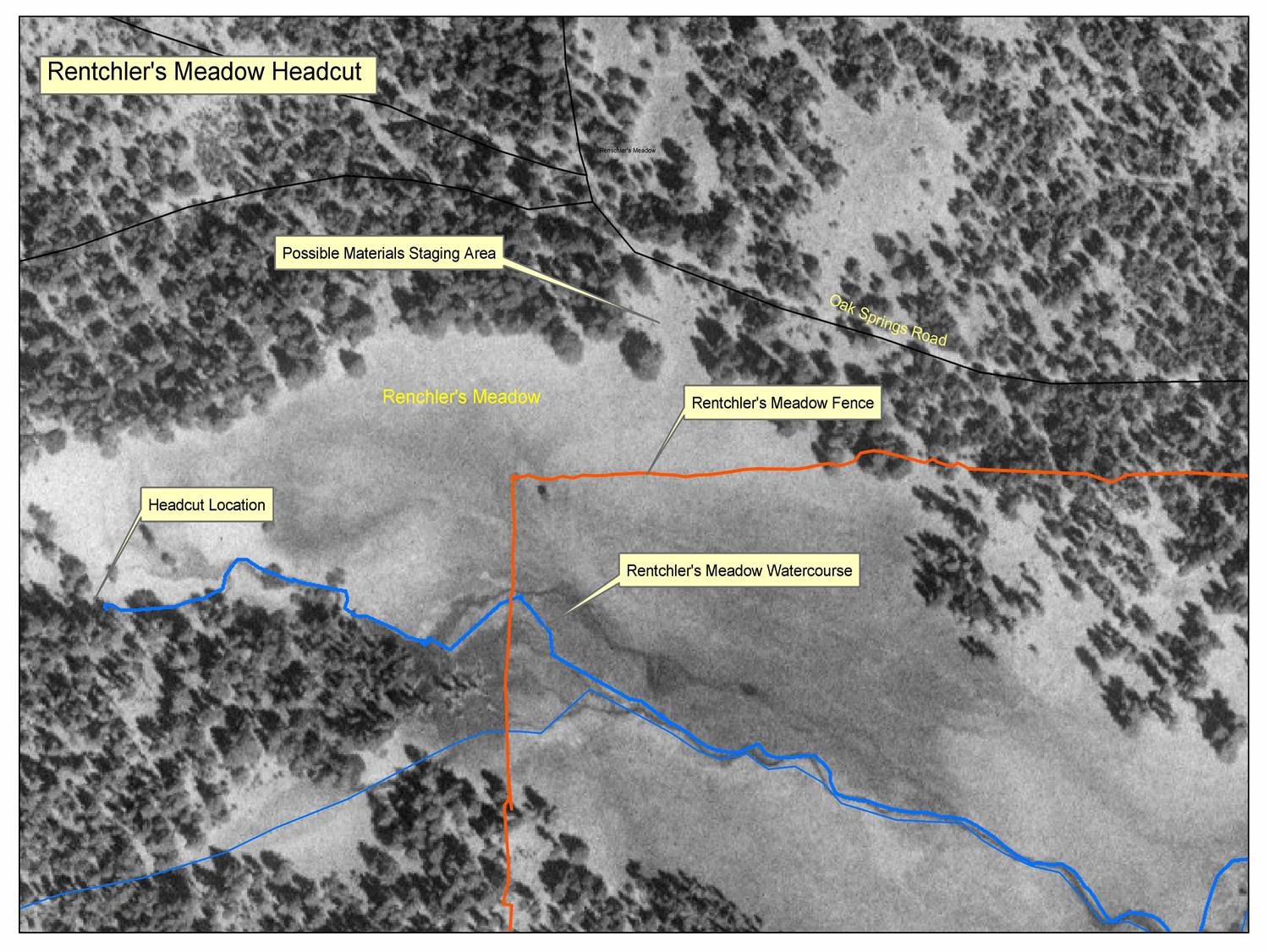 Renchler’ Meadow is an important water storage area for Dry Creek, a tributary of Satus Creek, both of which support culturally important fish species. Meadows are extremely important for absorbing and slowly releasing rainfall and snowmelt to maintain summer base flows in streams. The meadows themselves support culturally important roots that are gathered for food, medicinal and ceremonial purposes by the Yakama people. Renchler's Meadow was impacted by a variety of human related activities in the past, which ultimately caused the stream channel to erode throughout the meadow. Incised stream channels, two to eight feet deep, have caused the water table to drop and impaired the ability of the meadow to store runoff for late summer base flow maintenance. Additional damage to the meadow was caused by cattle overgrazing and physical soil compaction as well as trampling of the stream bed and banks, which allowed concentrated spring runoff to erode the channel causing lateral and vertical channel expansion.