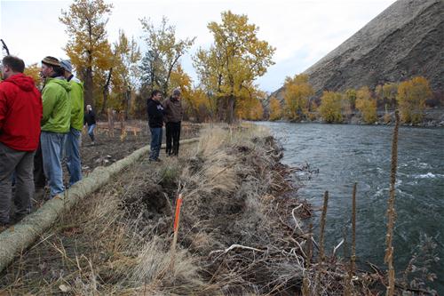 This project created a logjam habitat feature to stabilize approximately 800 feet of eroding left bank on the Lower Wenatchee River. THe large wood was placed above top of bank and will likely interact with the river once the bank erodes. This project will restore large wood to this portion of the Wenatchee river channel. The large wood will provide complexity and improve fish habitat in addition to stabilizing the eroding bank. Some areas on site were also restored with native vegetation to encourage a more natural riparian habitat for future generations.